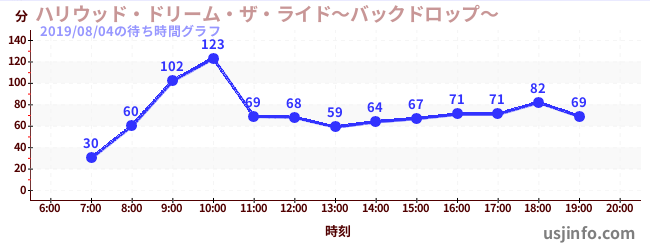 • ハリウッド・ドリーム・ザ・ライド〜バックドロップ〜$B$N(B2019年08月04日の待ち時間