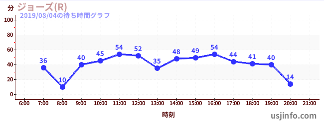 • ジョーズ(R)$B$N(B2019年08月04日の待ち時間