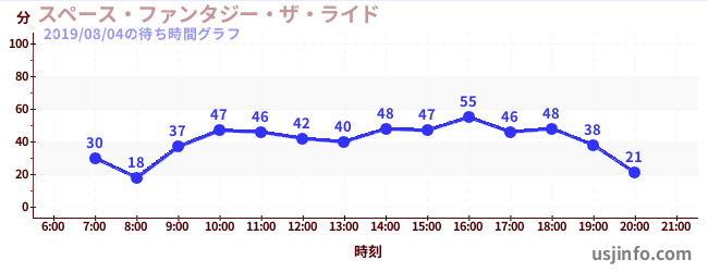 • スペース・ファンタジー・ザ・ライド$B$N(B2019年08月04日の待ち時間