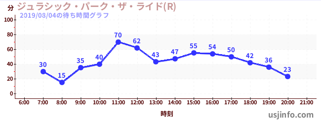 • ジュラシック・パーク・ザ・ライド(R)$B$N(B2019年08月04日の待ち時間