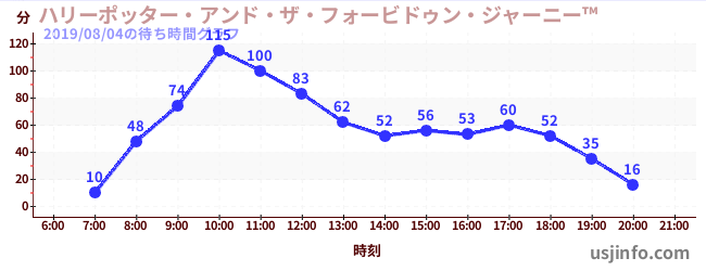 • ハリーポッター・アンド・ザ・フォービドゥン・ジャーニー™$B$N(B2019年08月04日の待ち時間