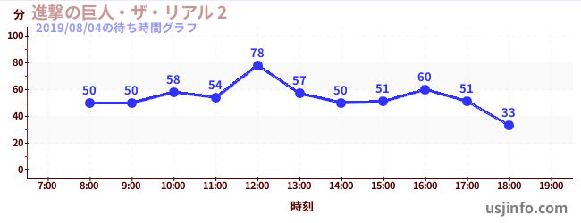 • 進撃の巨人・ザ・リアル 2$B$N(B2019年08月04日の待ち時間