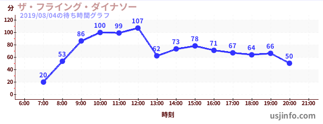 • ザ・フライング・ダイナソー$B$N(B2019年08月04日の待ち時間