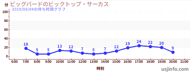 • ビッグバードのビックトップ・サーカス$B$N(B2019年08月04日の待ち時間
