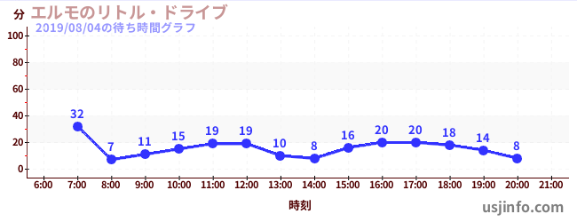 • エルモのリトル・ドライブ$B$N(B2019年08月04日の待ち時間