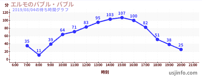 • エルモのバブル・バブル$B$N(B2019年08月04日の待ち時間