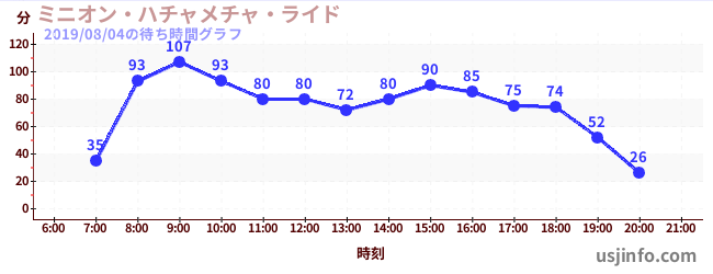 • ミニオン・ハチャメチャ・ライド$B$N(B2019年08月04日の待ち時間