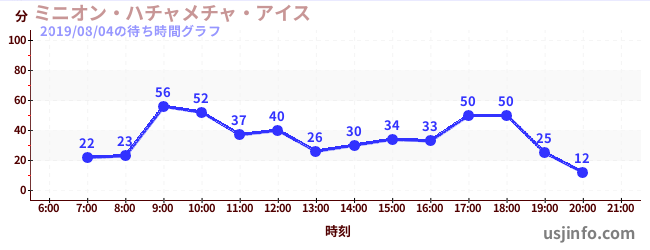 • ミニオン・ハチャメチャ・アイス$B$N(B2019年08月04日の待ち時間