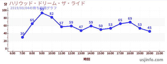 • ハリウッド・ドリーム・ザ・ライド$B$N(B2019年08月04日の待ち時間