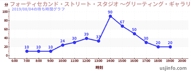 • フォーティセカンド・ストリート・スタジオ ~グリーティング・ギャラリー~ ミニオン$B$N(B2019年08月04日の待ち時間