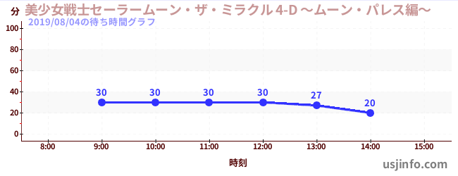 • 美少女戦士セーラームーン・ザ・ミラクル 4-D ~ムーン・パレス編~$B$N(B2019年08月04日の待ち時間