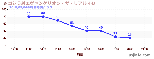 • ゴジラ対エヴァンゲリオン・ザ・リアル 4-D$B$N(B2019年08月04日の待ち時間