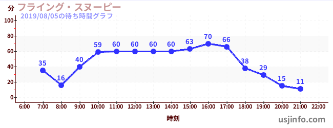 • フライング・スヌーピー$B$N(B2019年08月05日の待ち時間
