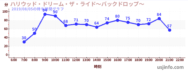 • ハリウッド・ドリーム・ザ・ライド〜バックドロップ〜$B$N(B2019年08月05日の待ち時間