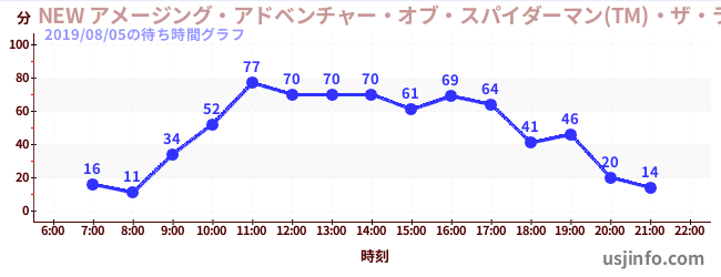 • NEW アメージング・アドベンチャー・オブ・スパイダーマン(TM)・ザ・ライド 4K3D$B$N(B2019年08月05日の待ち時間