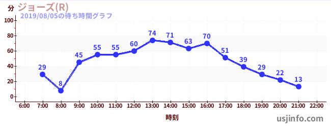 • ジョーズ(R)$B$N(B2019年08月05日の待ち時間