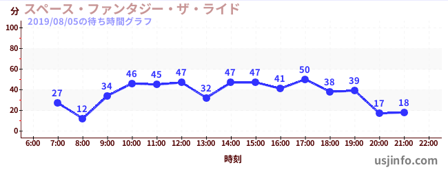 • スペース・ファンタジー・ザ・ライド$B$N(B2019年08月05日の待ち時間