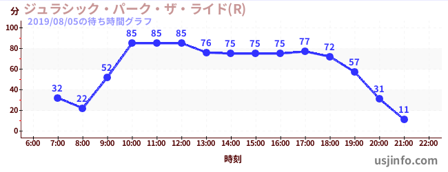 • ジュラシック・パーク・ザ・ライド(R)$B$N(B2019年08月05日の待ち時間