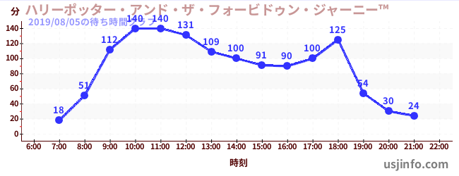 • ハリーポッター・アンド・ザ・フォービドゥン・ジャーニー™$B$N(B2019年08月05日の待ち時間
