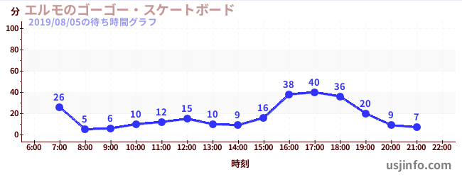 • エルモのゴーゴー・スケートボード$B$N(B2019年08月05日の待ち時間