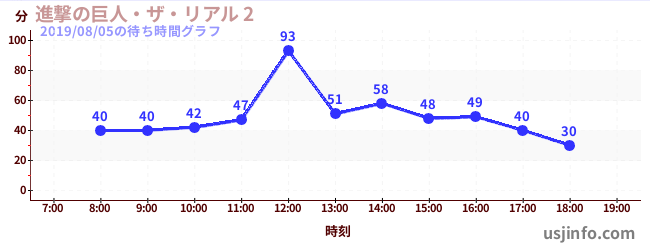 • 進撃の巨人・ザ・リアル 2$B$N(B2019年08月05日の待ち時間
