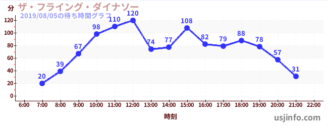 • ザ・フライング・ダイナソー$B$N(B2019年08月05日の待ち時間