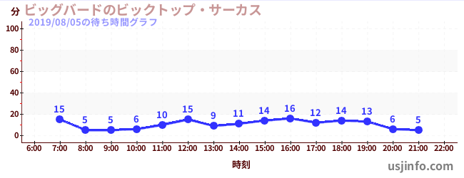 • ビッグバードのビックトップ・サーカス$B$N(B2019年08月05日の待ち時間