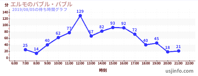 • エルモのバブル・バブル$B$N(B2019年08月05日の待ち時間
