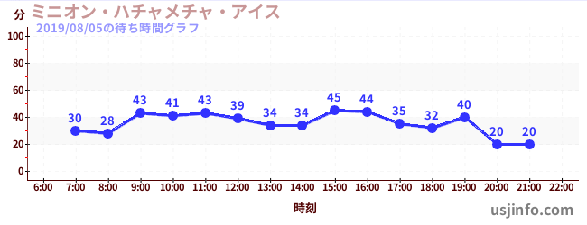 • ミニオン・ハチャメチャ・アイス$B$N(B2019年08月05日の待ち時間