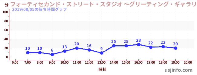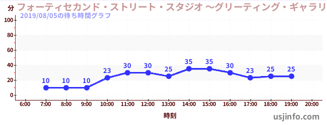 • フォーティセカンド・ストリート・スタジオ ~グリーティング・ギャラリー~ ピーナッツの仲間たち$B$N(B2019年08月05日の待ち時間