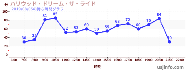 • ハリウッド・ドリーム・ザ・ライド$B$N(B2019年08月05日の待ち時間