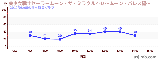 • 美少女戦士セーラームーン・ザ・ミラクル 4-D ~ムーン・パレス編~$B$N(B2019年08月05日の待ち時間