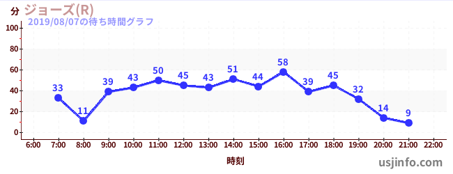 • ジョーズ(R)$B$N(B2019年08月07日の待ち時間