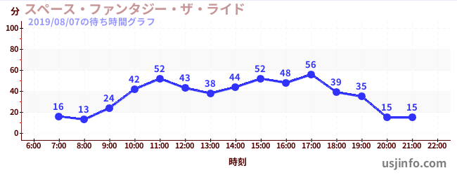 • スペース・ファンタジー・ザ・ライド$B$N(B2019年08月07日の待ち時間