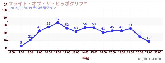 • フライト・オブ・ザ・ヒッポグリフ™$B$N(B2019年08月07日の待ち時間