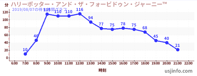 • ハリーポッター・アンド・ザ・フォービドゥン・ジャーニー™$B$N(B2019年08月07日の待ち時間