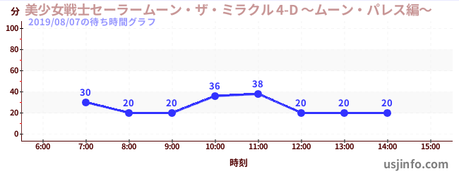 • 美少女戦士セーラームーン・ザ・ミラクル 4-D ~ムーン・パレス編~$B$N(B2019年08月07日の待ち時間