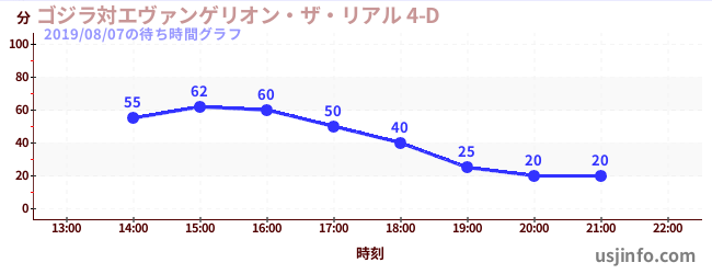 • ゴジラ対エヴァンゲリオン・ザ・リアル 4-D$B$N(B2019年08月07日の待ち時間