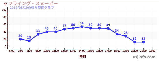 • フライング・スヌーピー$B$N(B2019年08月10日の待ち時間