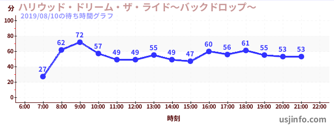 • ハリウッド・ドリーム・ザ・ライド〜バックドロップ〜$B$N(B2019年08月10日の待ち時間