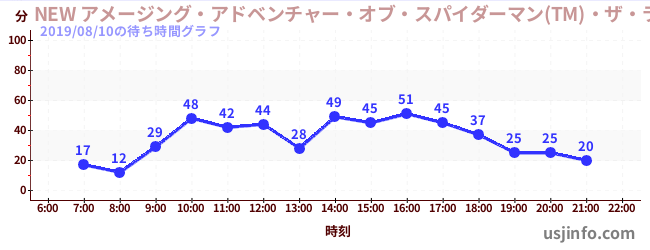 • NEW アメージング・アドベンチャー・オブ・スパイダーマン(TM)・ザ・ライド 4K3D$B$N(B2019年08月10日の待ち時間