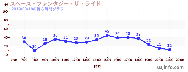 • スペース・ファンタジー・ザ・ライド$B$N(B2019年08月10日の待ち時間