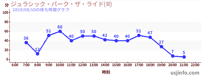 • ジュラシック・パーク・ザ・ライド(R)$B$N(B2019年08月10日の待ち時間