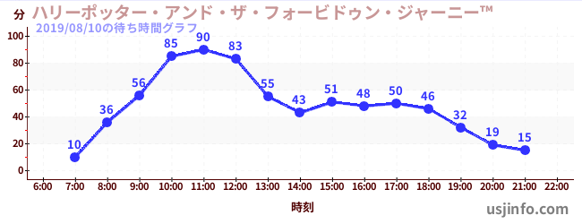 • ハリーポッター・アンド・ザ・フォービドゥン・ジャーニー™$B$N(B2019年08月10日の待ち時間