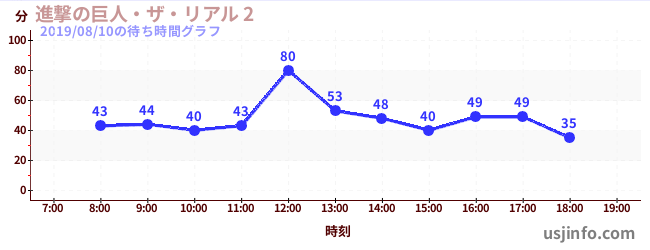 • 進撃の巨人・ザ・リアル 2$B$N(B2019年08月10日の待ち時間