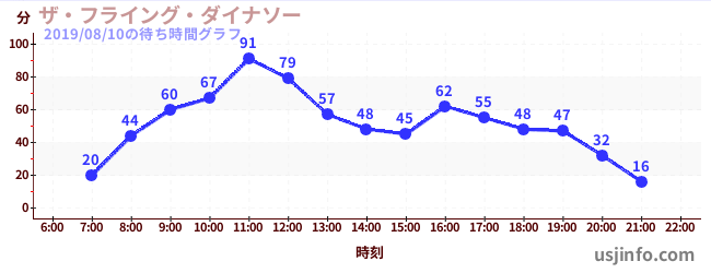 • ザ・フライング・ダイナソー$B$N(B2019年08月10日の待ち時間