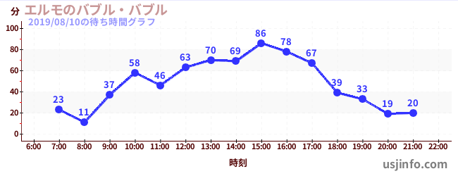 • エルモのバブル・バブル$B$N(B2019年08月10日の待ち時間
