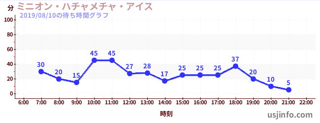 • ミニオン・ハチャメチャ・アイス$B$N(B2019年08月10日の待ち時間