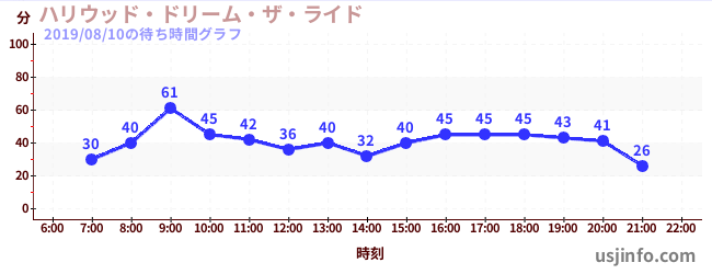 • ハリウッド・ドリーム・ザ・ライド$B$N(B2019年08月10日の待ち時間
