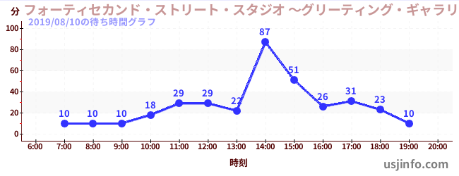 • フォーティセカンド・ストリート・スタジオ ~グリーティング・ギャラリー~ ピーナッツの仲間たち$B$N(B2019年08月10日の待ち時間